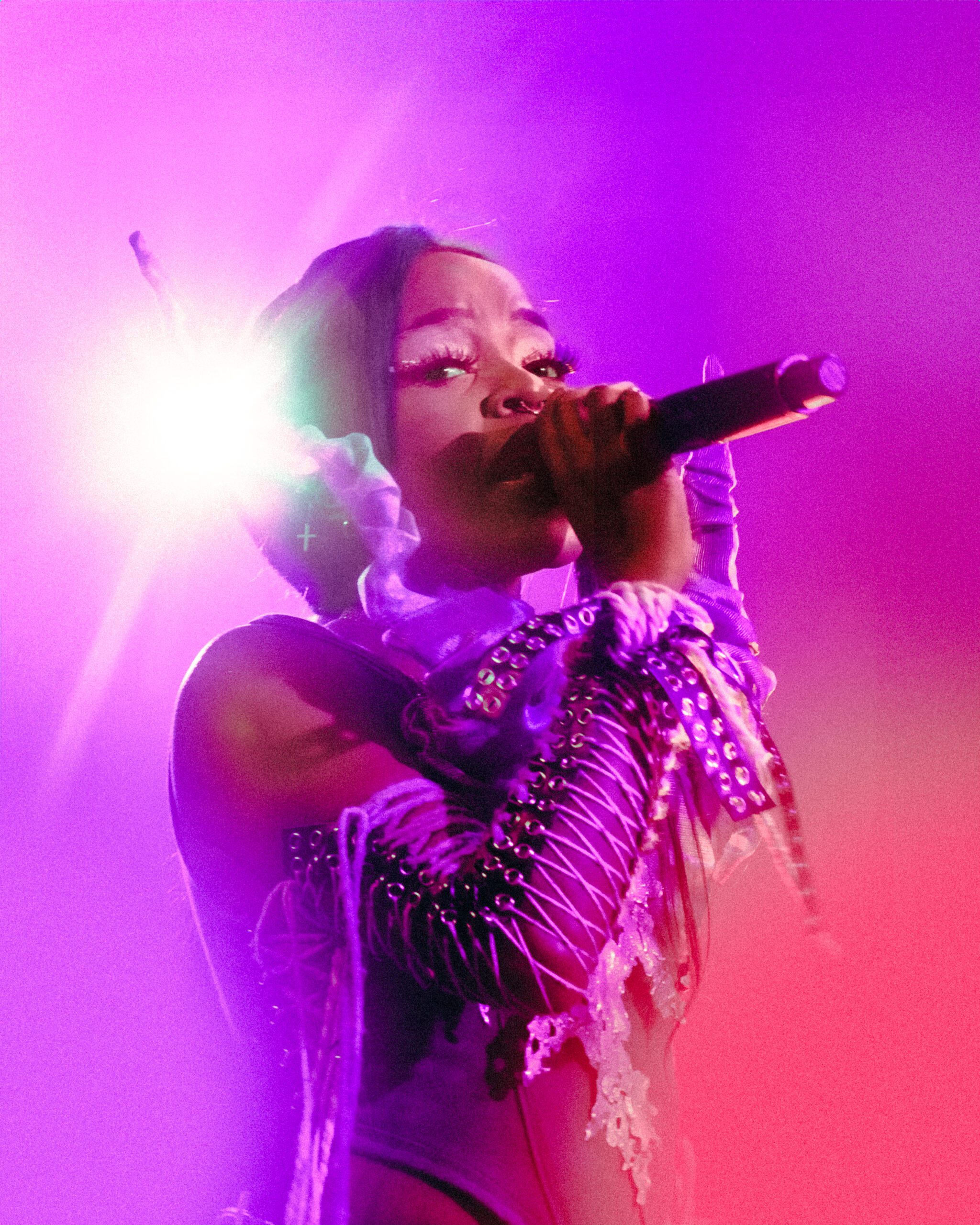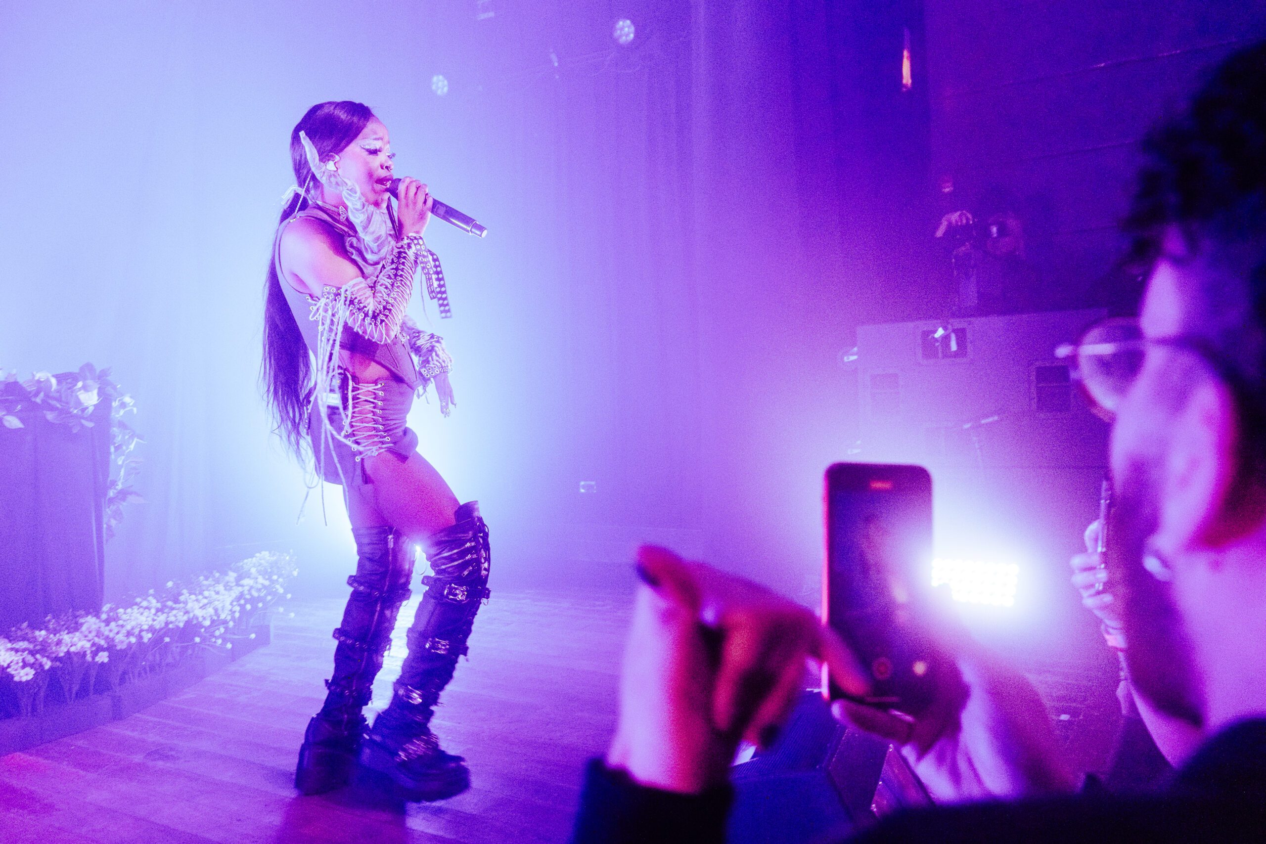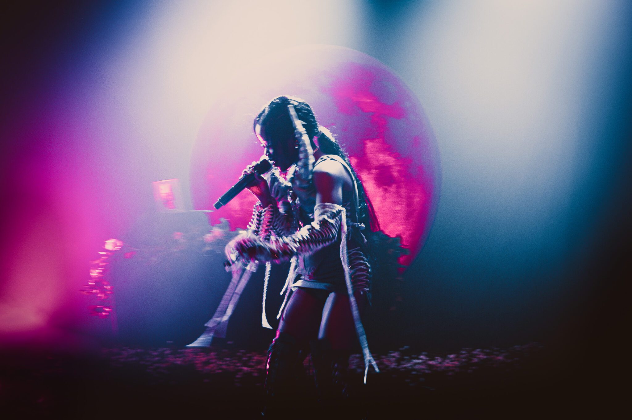Leading the crowd through a vibrant journey through a kaleidoscope of pink and blue lights, reminiscent of a cotton candy wonderland, Tkay Maidza transformed the atmosphere into a visual spectacle. Amidst the energetic lyricism and the eclectic sea of gleaming faces in the front row to engage with, Maidza delivered a performance that was nothing short of captivating. From the beats of “Won One” to the allure of “24K,” each note seemed to resonate with the pulsating energy of the crowd. And then came the moment I personally was waiting for — “Free Throws,” which turned the performance from memorable to downright unforgettable.