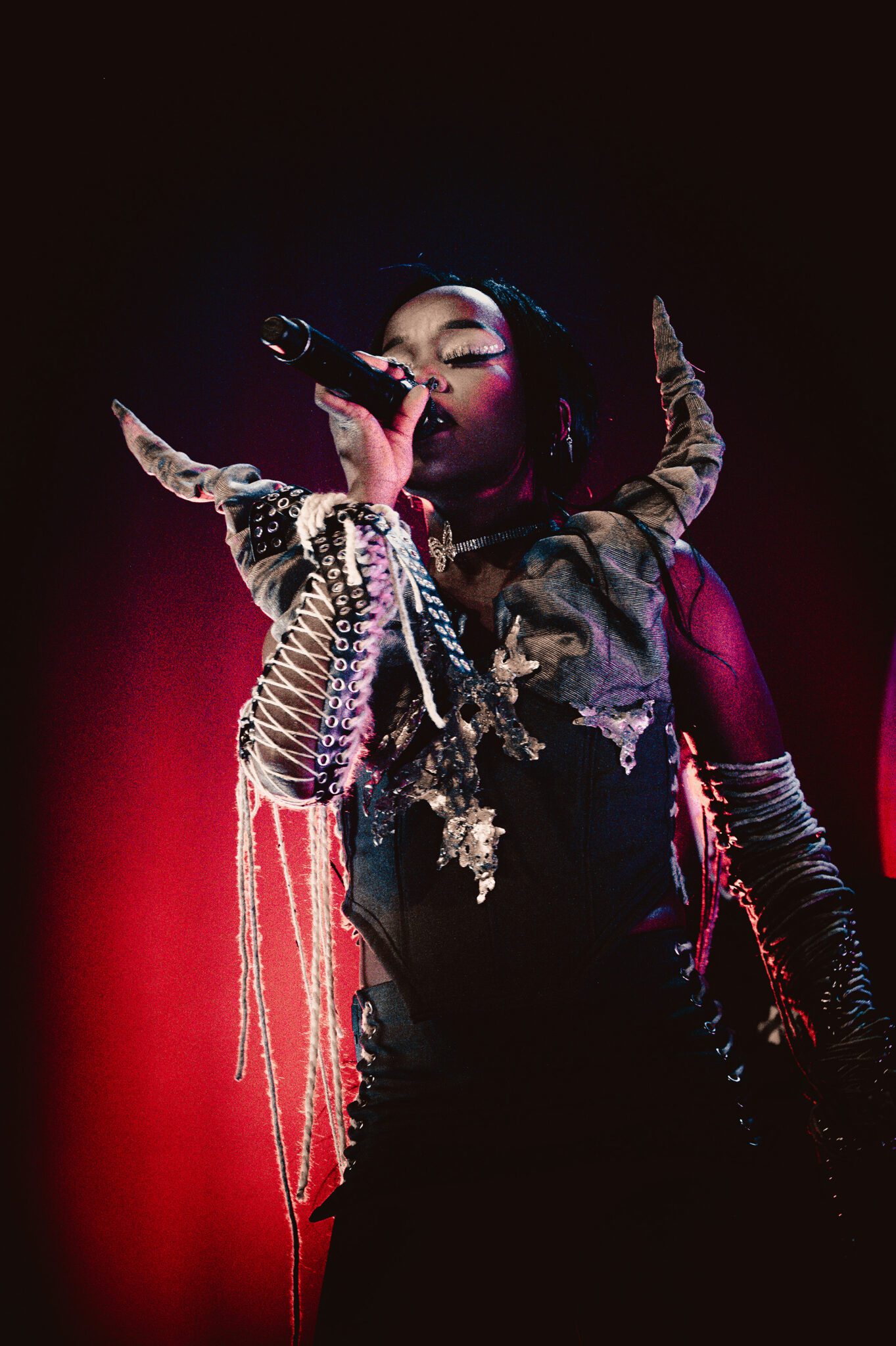 Finally, Tkay Maidza takes the stage in a burst of energy and thick cast of haze flooding the stage. The performance we’ve been waiting for has begun. Coming in hot with heavy hitting lyricism and larger than life synths, Tkay begins her performance with “Grasshopper.” Immediately, the crowd was drawn in. “The symbolism in this song is about coming out in the dark, and it’s really about coming out into your own,” Maidza says about her opening song.